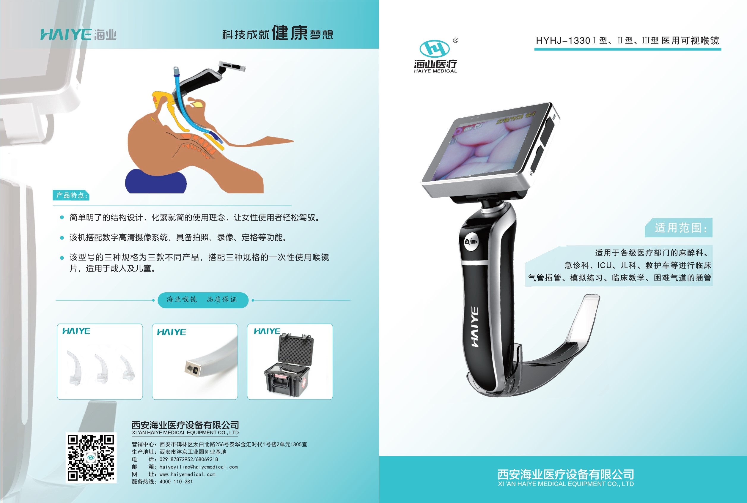 HYHJ-1330 Ⅰ型、Ⅱ型、Ⅲ型医用可视喉镜